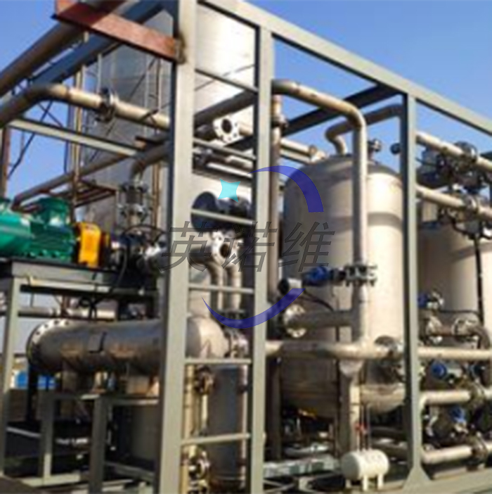 氯丙烯除水回收:低壓含氯丙烯的氣體經(jīng)過堿洗水洗收送到除水裝置,通過羅茨風(fēng)機(jī)增壓后進(jìn)入冷卻器降溫同時(shí)除去一部分水后進(jìn)入吸附塔進(jìn)一步除水,從吸附塔出來的低露點(diǎn)氯丙烯氣體再送到低溫冷卻器,在低溫冷卻器的作用下,氣態(tài)的氯丙烯轉(zhuǎn)變?yōu)橐簯B(tài)氯丙烯,液態(tài)氯丙烯再回到主裝置使用。